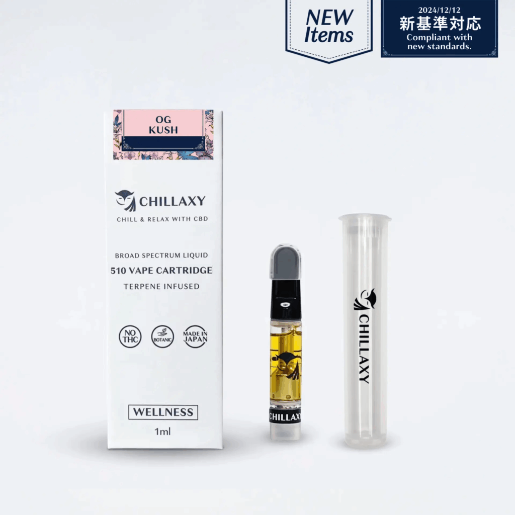 CBDブランド「CHILLAXY(チラクシー)」が手掛ける、新基準対応510規格ウェルネスリキッド・オージークッシュは、2024年12月施行の法改正に完全準拠した安心のウェルネスブレンドです。